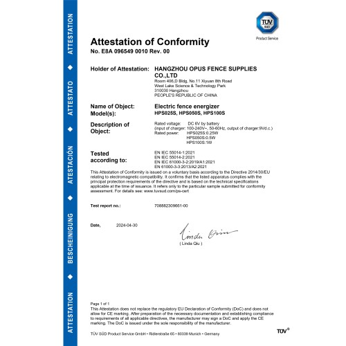 - HPSFENCE ha solicitado el certificado EMC para la diferencia de julios del energizador de cerca eléctrica.2025/6/13